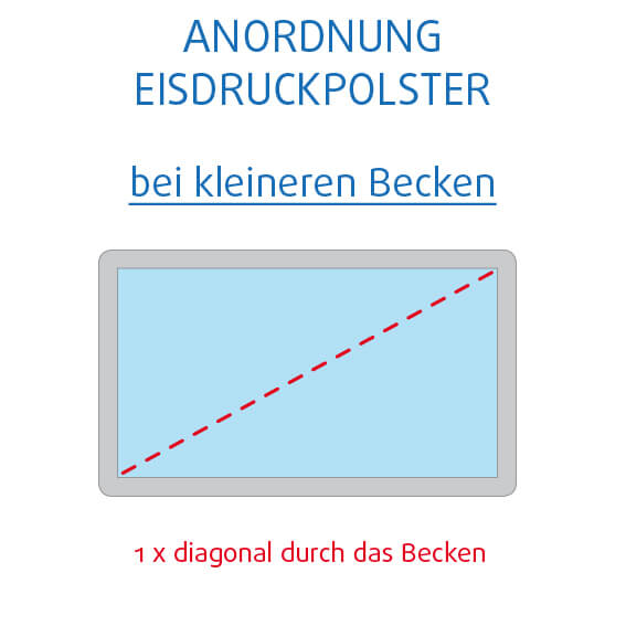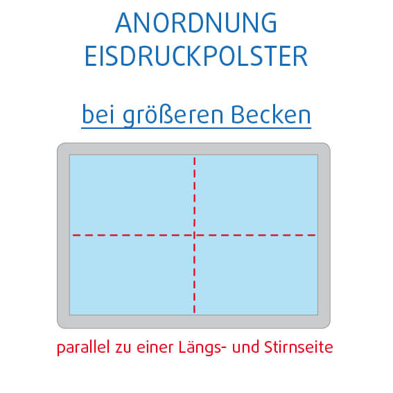 Für einen runden Pool mit 300 cm Durchmesser empfiehlt es sich, die Eisdruckpolster einmal quer durch den Pool zu legen.